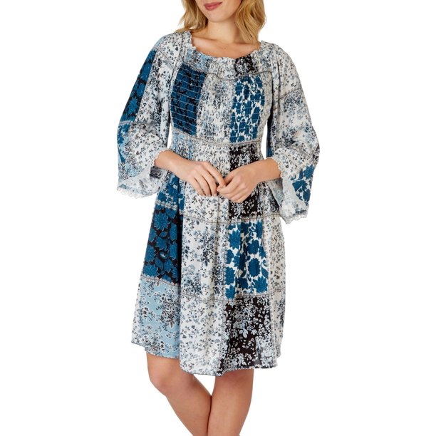 Lola P Womens Smocked Floral Boho Dress Medium Green Walmart Com